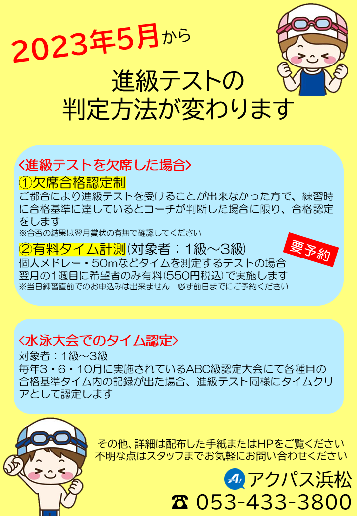 進級テストについて、2023年5月より判定方法を下記の通り改正させていただきます。