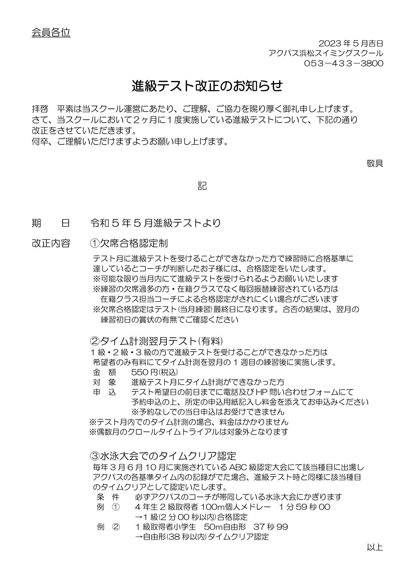 3. 進級テスト改正のお知らせ