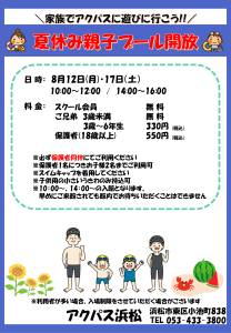 アクパススクール会員様限定! アクパスのプールにご家族で遊びにきませんか? (必ず会員証を持参ください)