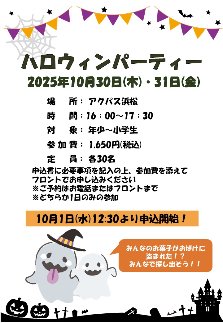 10月30日(木)・31日(金)にハロウィンパーティーを開催します🎉