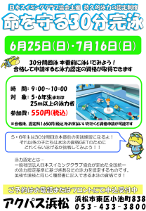 命を守る30分完泳(30分間回泳認定会)のお知らせ