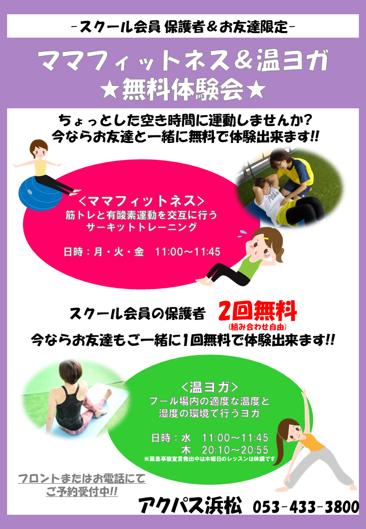 ママフィットネス&温ヨガ無料体験会を実施します!!
