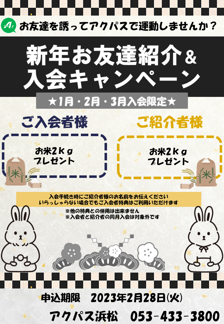 アクアフィットネス会員(大人の方)ご入会者にはお米2kgプレゼント!