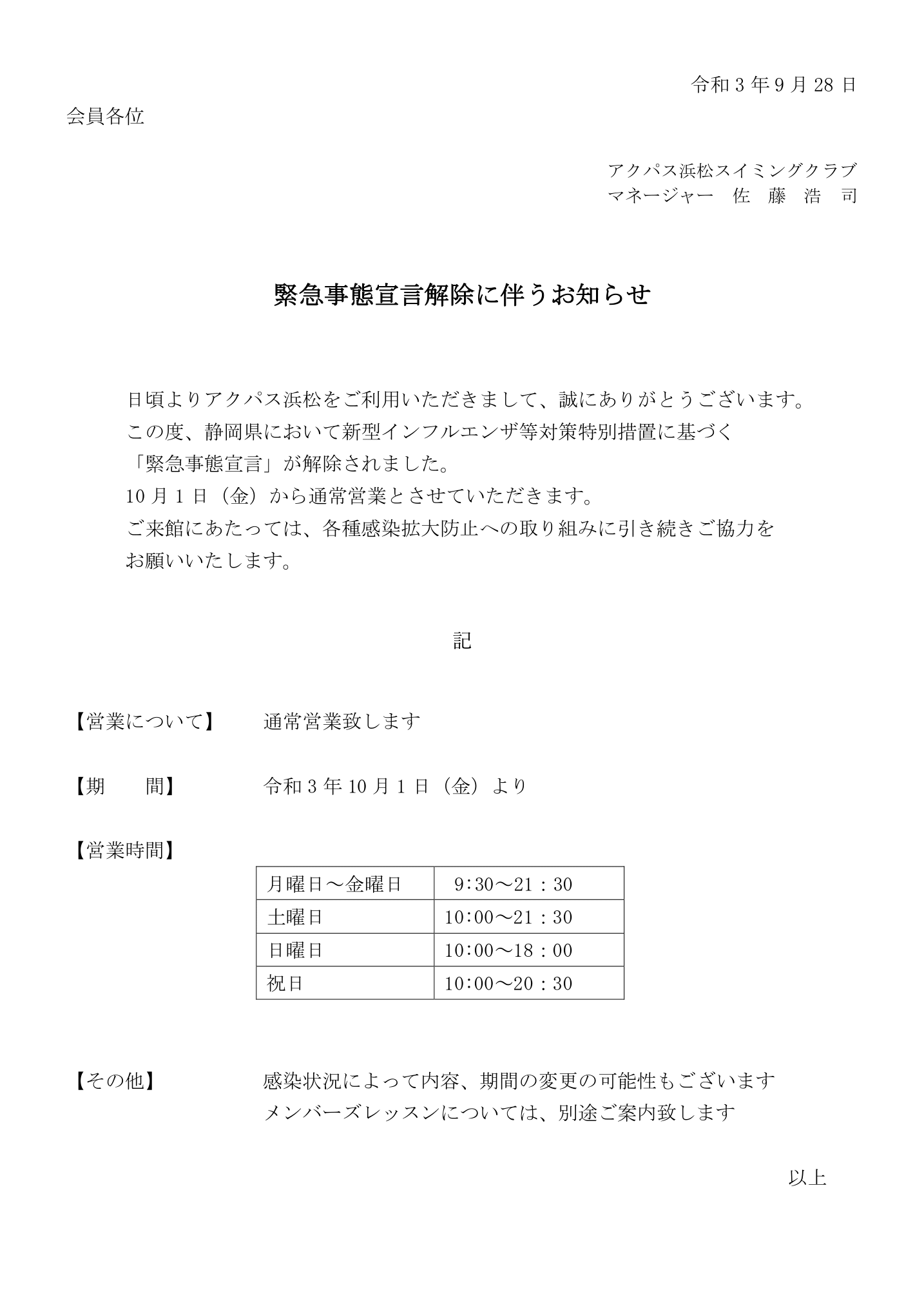 この度、静岡県において新型インフルエンザ等対策特別措置に基づく「緊急事態宣言」が解除されました。10月1日(金)から通常営業とさせて頂きます。詳しくはこちらをご覧ください。↓
