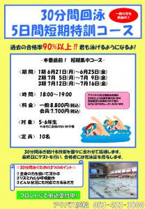 30分間回泳 5日間短期特訓コースを実施します!