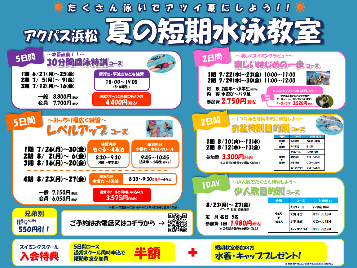 今回4期(8/23(月)~27(金))に限り2歳半~小学生のお子様が同じ時間で受けられます!!