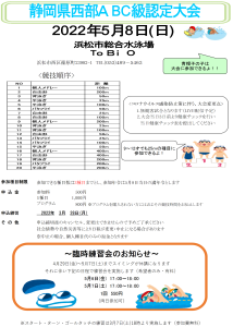 投稿日 2022/3/20 カテゴリー スイミングスクール 2022年5月8日(日)浜松市総合水泳場TOBIOで、静岡県西部ABC級認定大会が開催されます。 参加対象は、アクパスの9級以上のお子様となります。日頃の練習成果をためす良い機会ですので、 是非チャレンジしてみましょう! ↓詳しくはこちら↓※画像をクリック(タップ)すると拡大されます