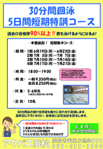 ★夏休み短期水泳教室の中に30分間回泳直前平泳ぎ習得コースもあります