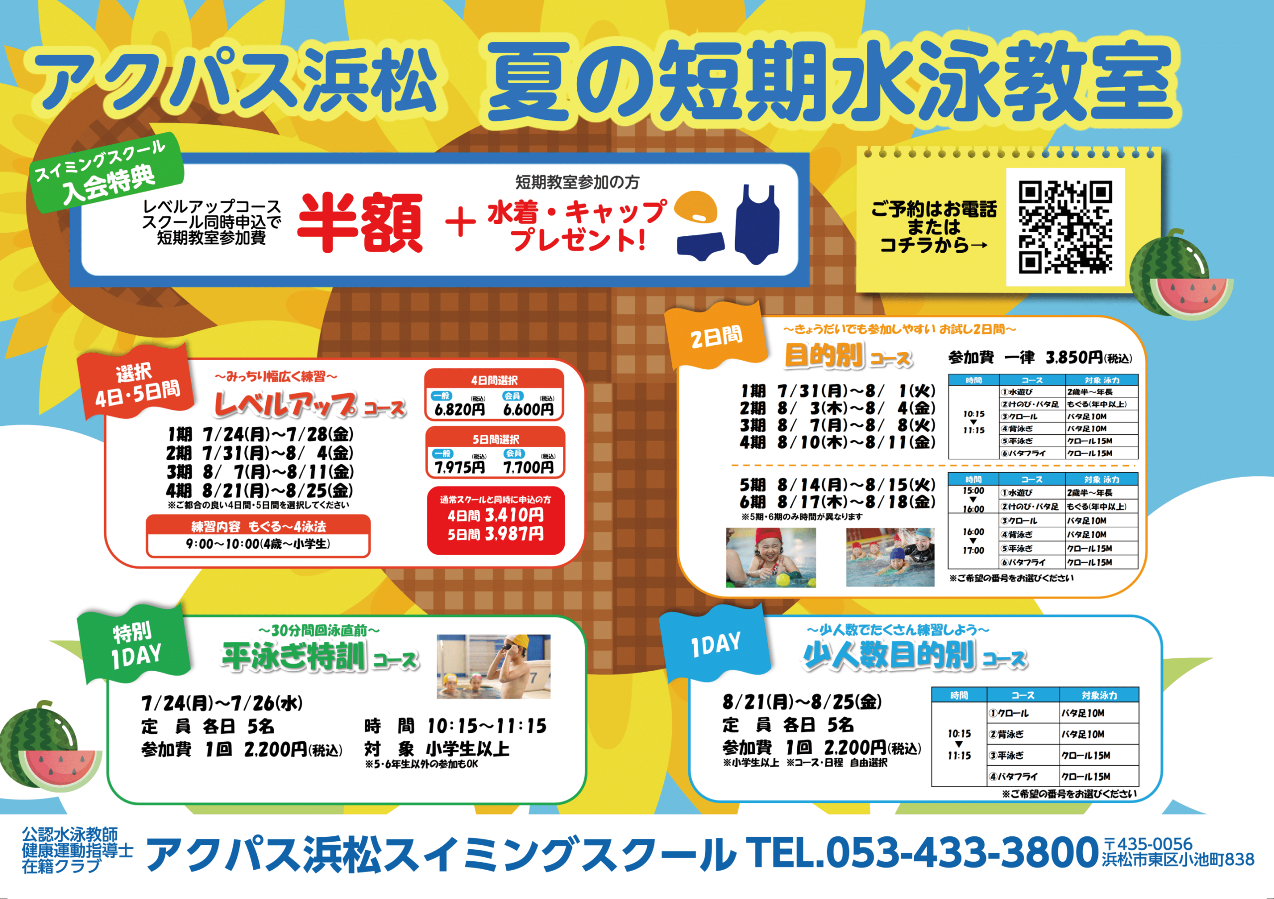 年齢や泳力によっては1日2時間の受講も可能です。