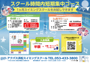 7月 or 8月の1ヶ月間通常のスイミングスクールをお試しできるコースです。