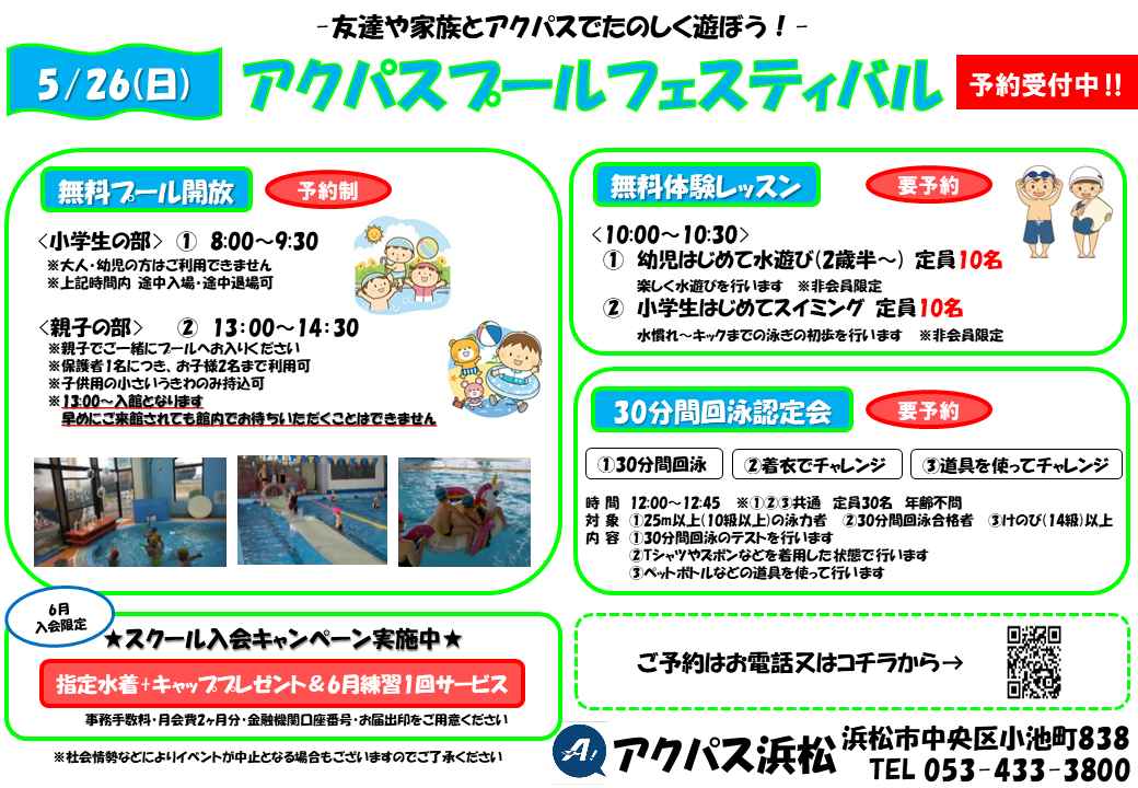 5/26(日) アクパスプールフェスティバルを開催します!!