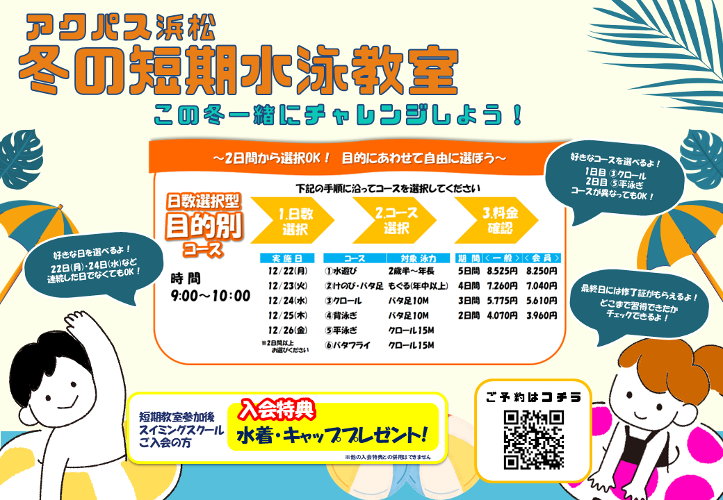 12月または1月の1ヶ月間通常のスイミングスクールをお試しできるコースです。