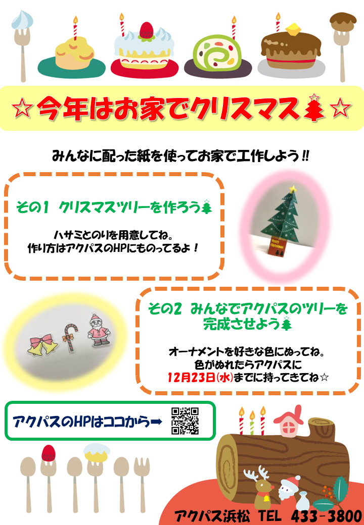 アクパスのクリスマスツリーの飾りもあるから色をぬってアクパスまでもってきてネ♪